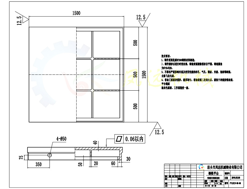 結構:單圍箱型結構。材質:Ht250. 精度:_,調試后在6絲以內。