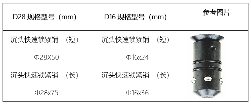【鳳遠(yuǎn)機(jī)械D16/D28沉頭快速鎖緊銷的規(guī)格型號(hào)】: