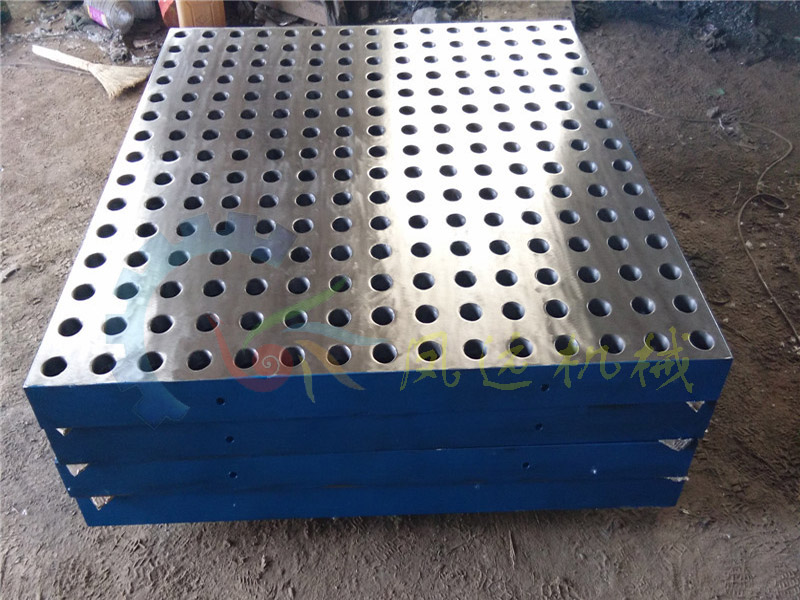 【鳳遠機械鑄鐵火工平臺的外觀】 : 鑄鐵平臺為箱型筋板式,通常底部加強筋噴涂紅色防銹漆,工作面邊沿噴涂灰色油漆,邊沿下部分噴涂藍色油漆。也可以根據用戶要求顏色噴涂。