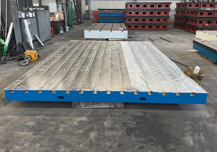 鑄鐵平臺規格通常有200*300-3000*8000mm,大于以上規格的可以考慮拼接形式。鑄鐵拼接平臺的原則有以下幾條:1、不開槽的鑄鐵平臺:考慮拼接方式塊數越少越好,這樣對于拼接后的精度影響較小;2、異形鑄鐵平臺規格:通常平臺以長方形為主,如需要正方形如5000*5000mm,可以考慮拼接成2塊長方形,如2500*5000mm。這樣的好處是單塊平臺精度好控制。3、開槽鑄鐵平臺:盡量拼接處槽間距對接后和其他槽間距相同,如槽間距要求300mm,拼接處可以各留150mm,這樣對接后槽間距仍然是300mm。4、承重較大的鑄鐵平臺:承載能力是
